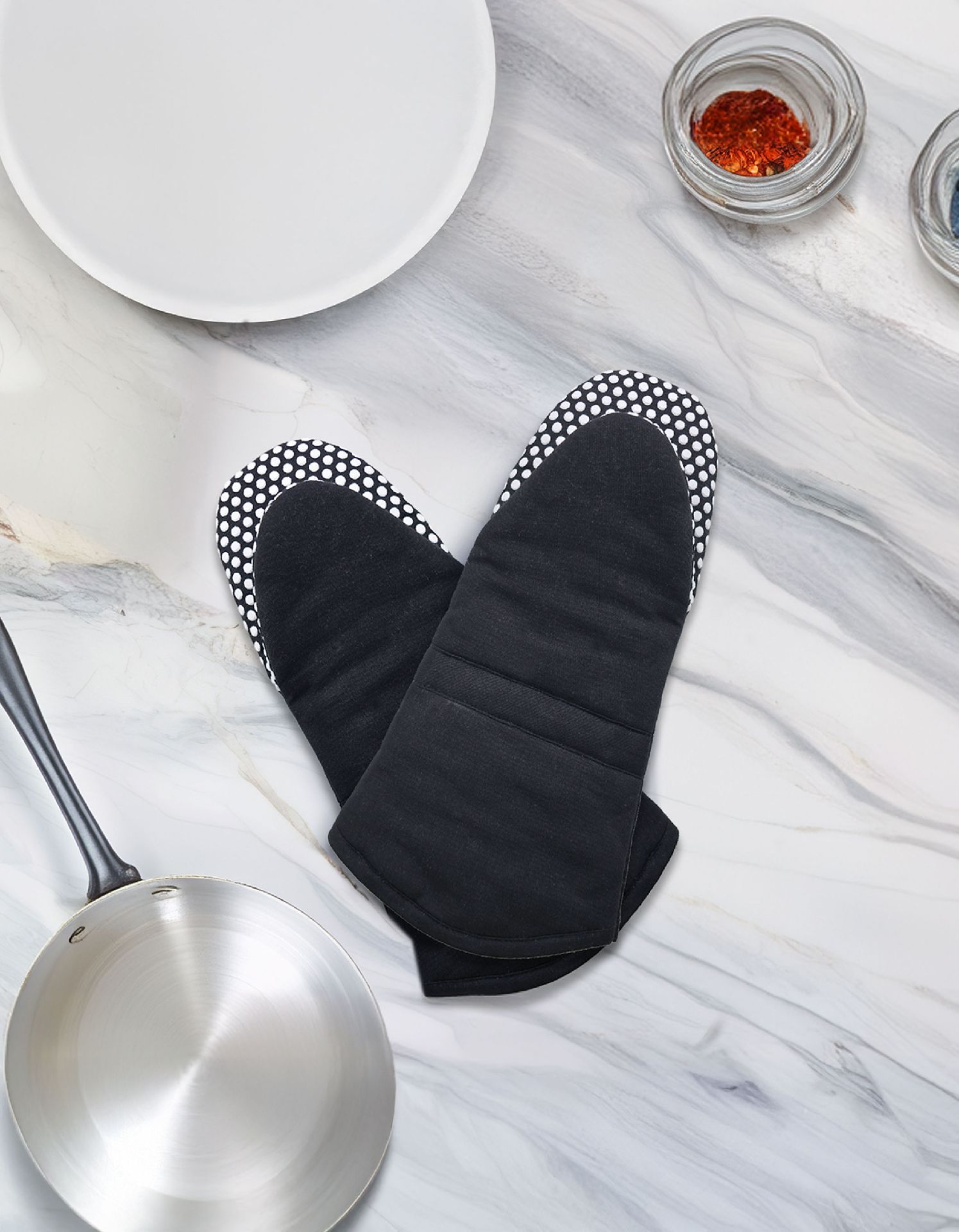 OVEN MITT BLACK WITH WHITE SILICON DOTS 13"